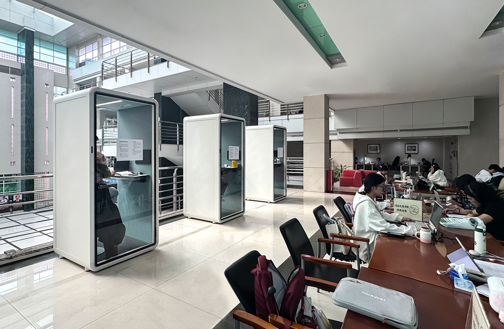 The modular nature of the HECOR Office Pod allows it to be deployed flexibly in every corner of the library—whether in the reading areas on various floors of the main building, in spacious corridors, or even in dimly lit passageways.